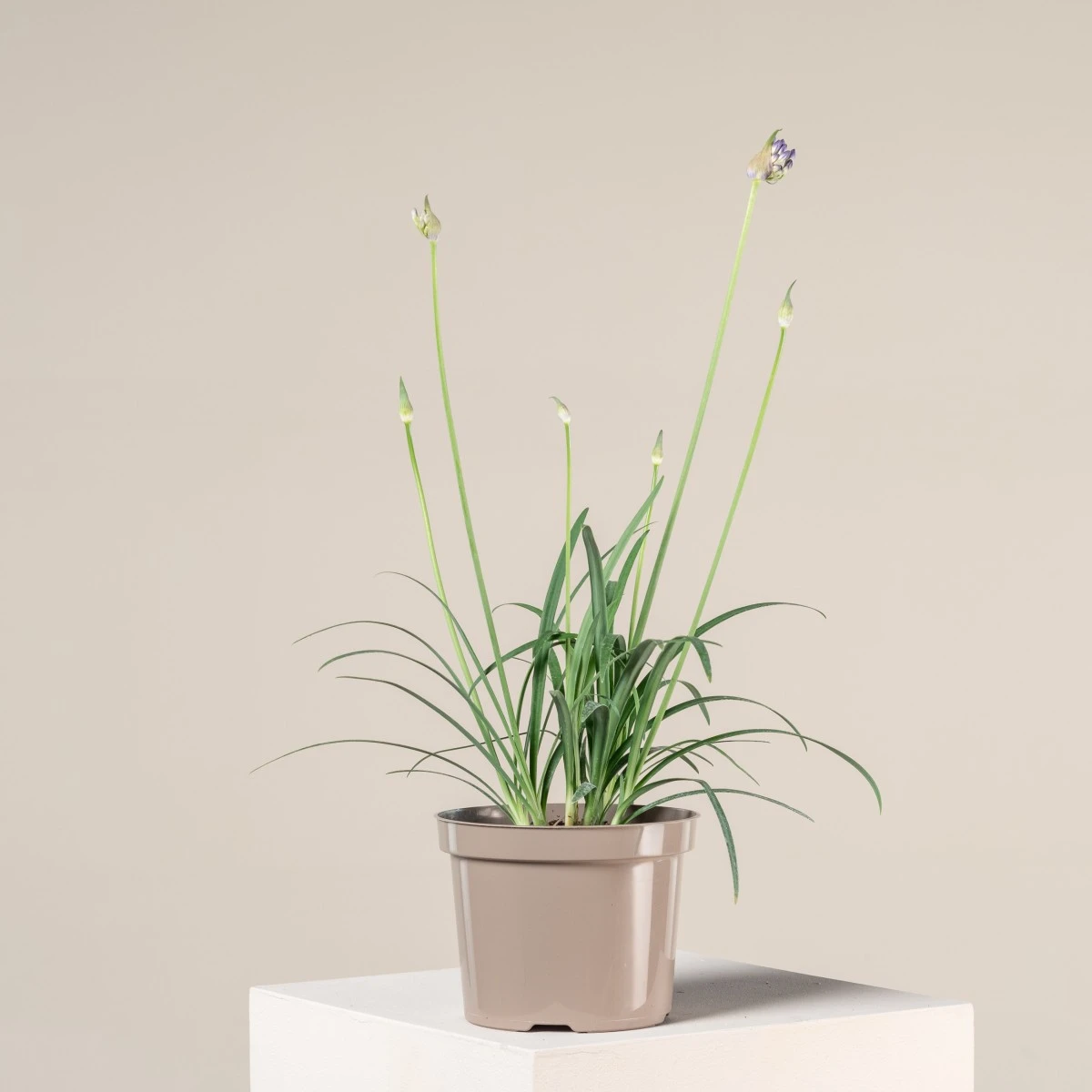 Prolific sky blue trumpets unfurl in umbels with a dark stripe on each petal, reaching around 50cm above strappy attractive foliage.