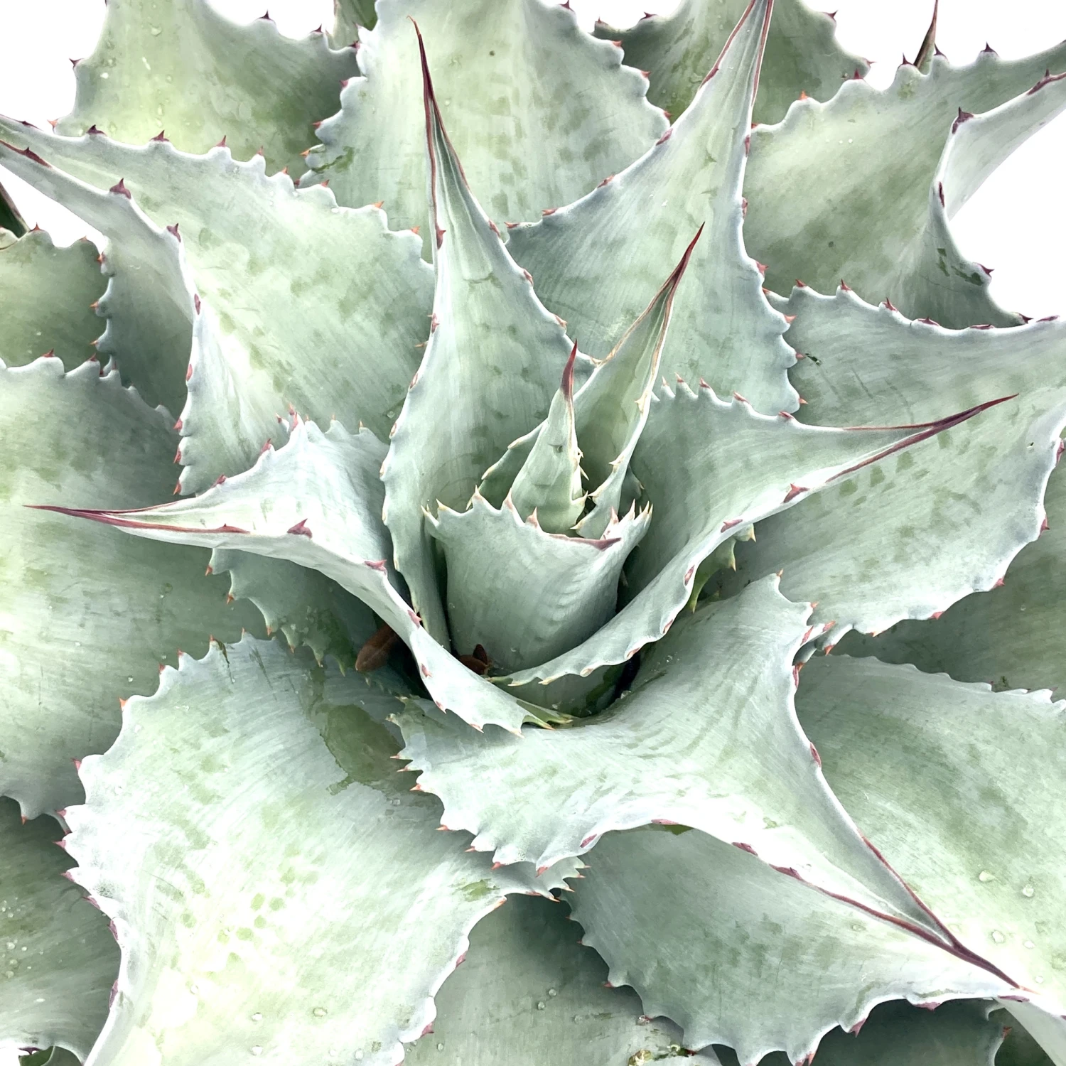 Agave ovatifolia ‘Vanzie,’ also known as “Whale’s Tongue Agave,” is a striking succulent perfect for UK gardens. This drought-tolerant plant forms a large, dense rosette with broad, powdery blue-grey leaves featuring wavy edges, reaching up to 1.5 metres in height and slightly more in width. The soft spines along its thick, fleshy leaves make it a safer choice for garden use.