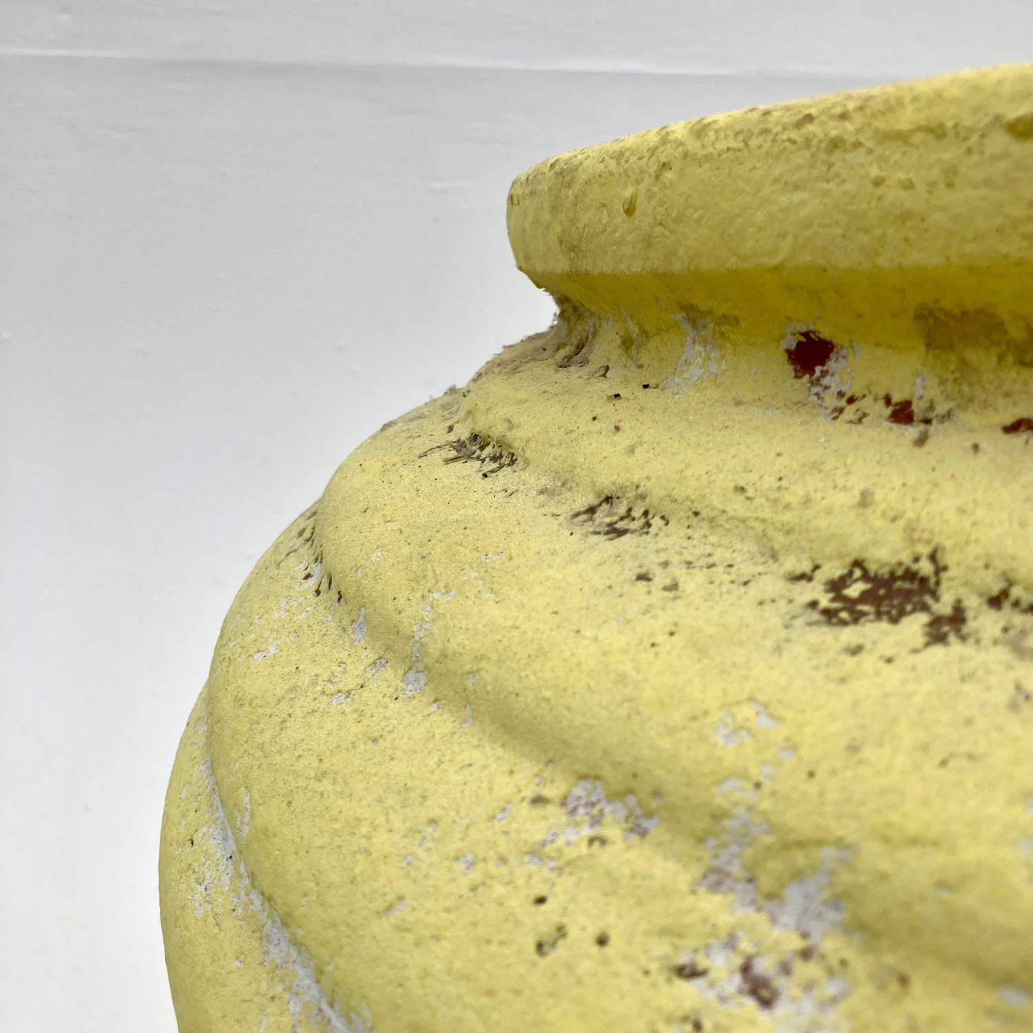 Make a bold statement with this magnificent Ali Baba outdoor pot, named after the infamous Arabic folklore character. With a classic urn shape, and bold horizontal ridges, it is finished with an antique, yellow glaze to really make it stand out in any setting.