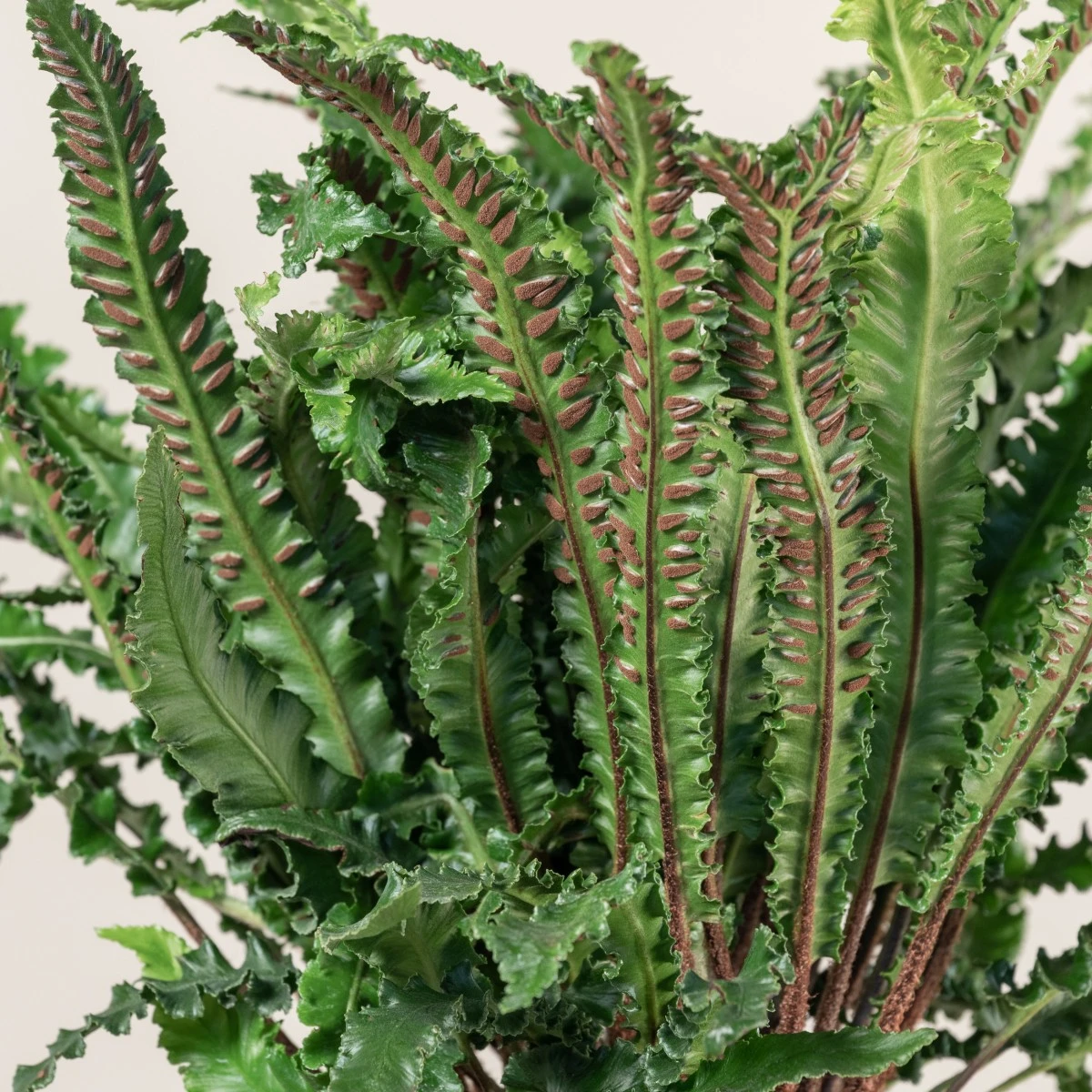 An eye-catching cultivar of the British native evergreen fern with slender, glossy pale emerald fronds which ripple and undulate at their edges.