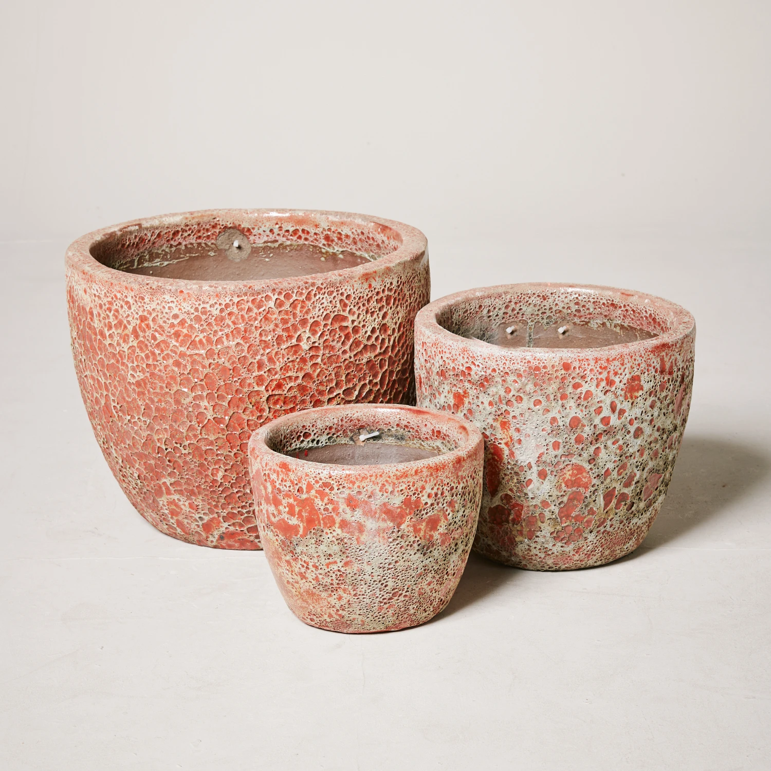 No two pots are identical and it is this organic nature that makes these pots work so well. TheΒ pumice-like finish is reminiscent of hardened lava which blends in with any natural environment and gives the illusion of the pot being an extension of the landscape, rather than something made by human hands.