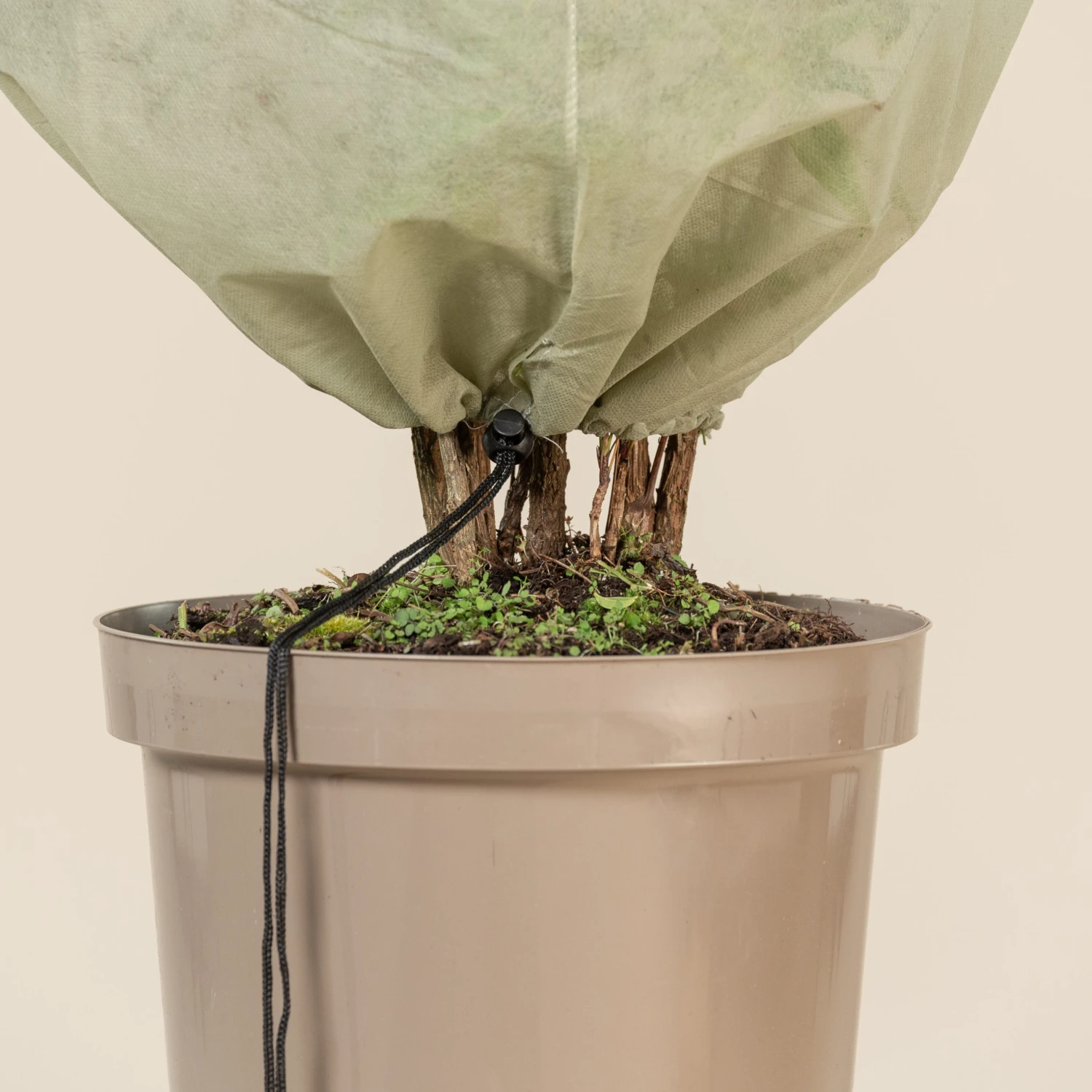 Made of 35gsm polypropylene fleece, these jackets allow sunlight, air and moisture to filter through which helps to maintain healthy growth, whilst the natural green colour remains visually unobtrusive in the garden. The drawstring close allows for easy use and ensures full protection for the entirety your plant.