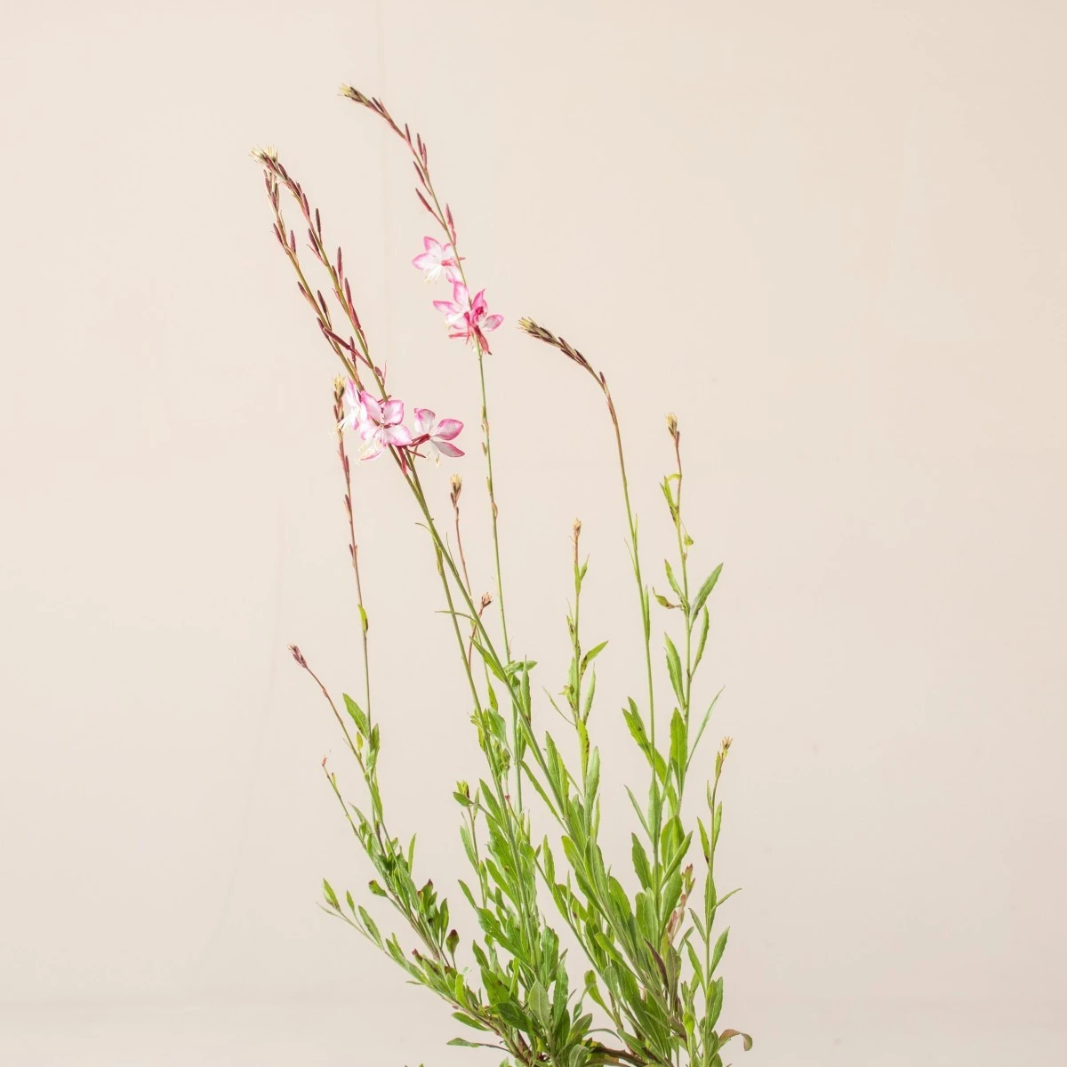 Gaura ‘Rosy Jane,’ a captivating perennial, enchants with its striking bicolor blooms and graceful appearance. With delicate pink and white flowers that resemble butterflies floating on tall stems, it adds a touch of elegance to any garden. This low-maintenance plant thrives in full sun and well-draining soil, making it suitable for various landscapes.
