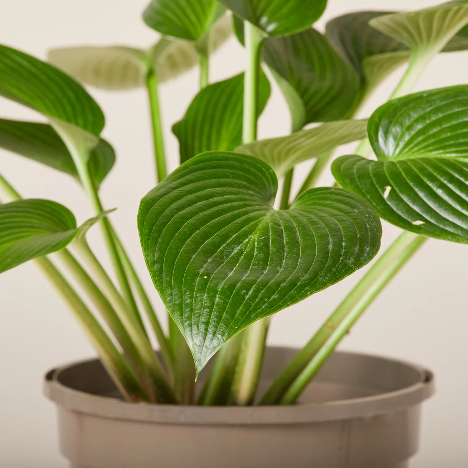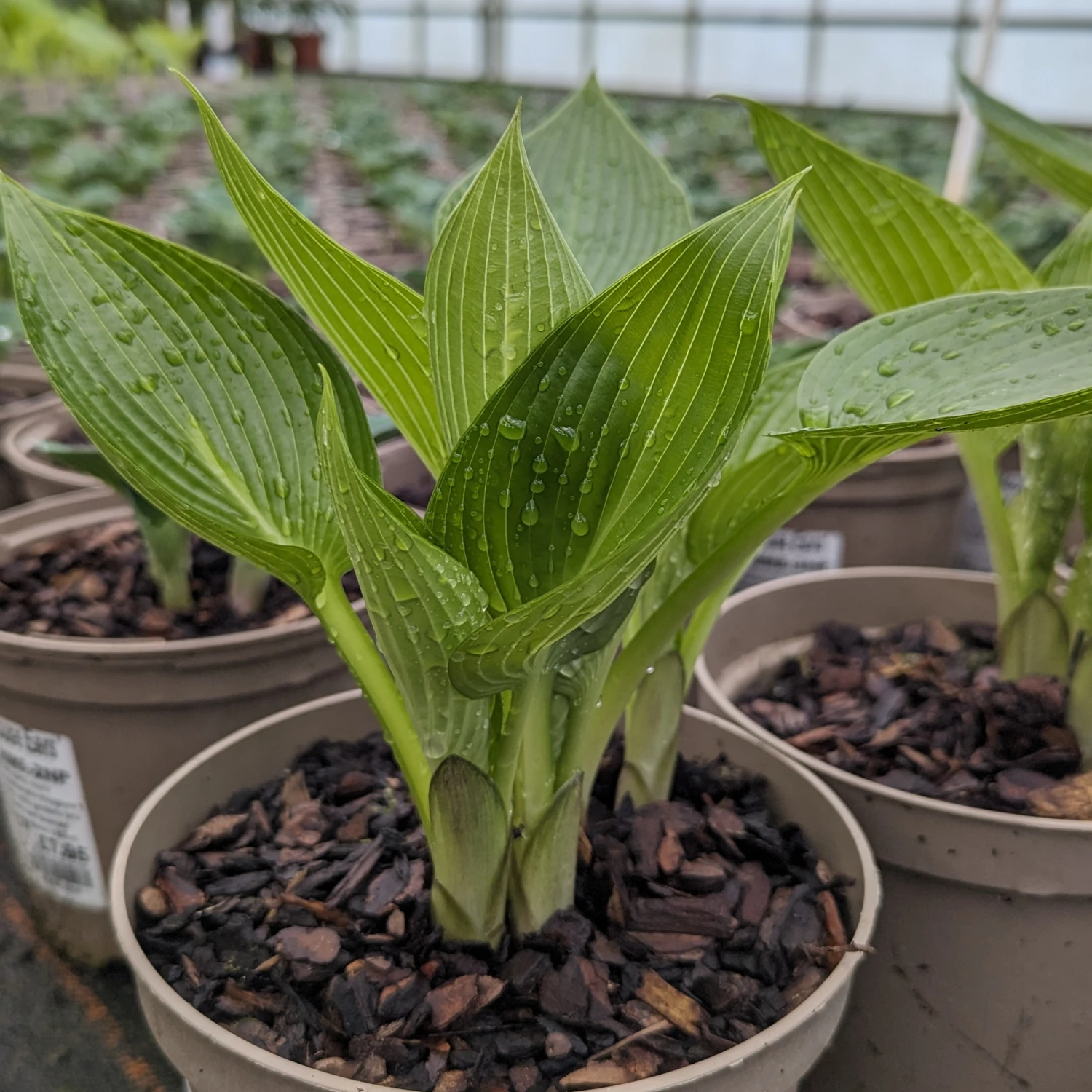 Hosta ‘Devon Green’ features elegant foliage and compact growth. Its heart-shaped leaves sport a rich green hue, ideal for shaded gardens. Flourishing in moist, well-drained soil and partial to full shade, it’s a perfect fit for borders or woodlands. In summer, tall spikes bear lavender flowers, enhancing its allure.