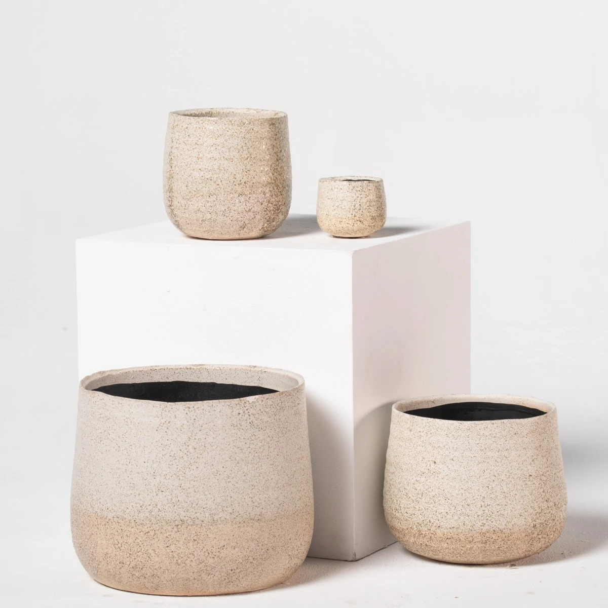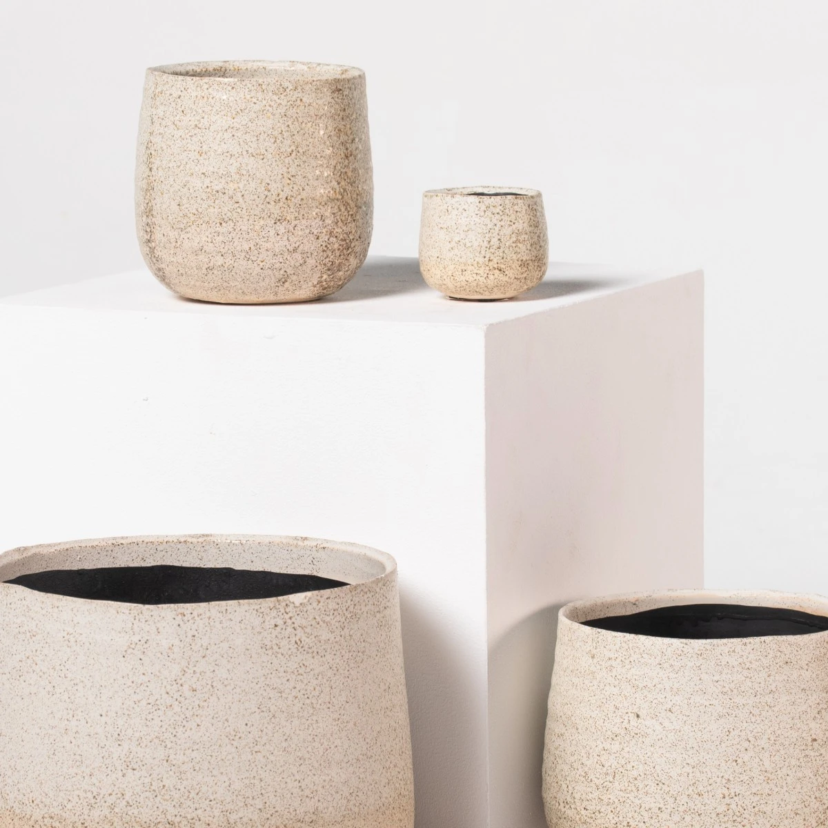 The Iris collection is a range of ceramic pots with a vintage, handcrafted feel. They come in pastel hues, finished with a craquelure texture and feature exposed ceramic rims.