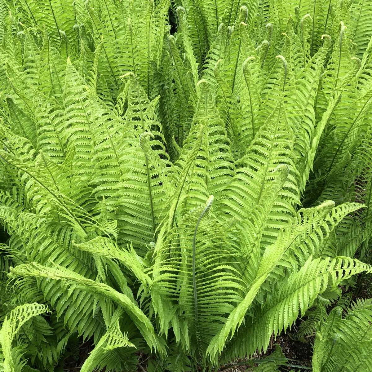 Matteuccia struthiopteris, or the Ostrich fern, is a wonderfully architectural and extremely hardy plant for moist, cool places. Once settled in it will spread by lateral stolons to form quite dense colonies of beautifully elegant lime-green shuttlecocks.