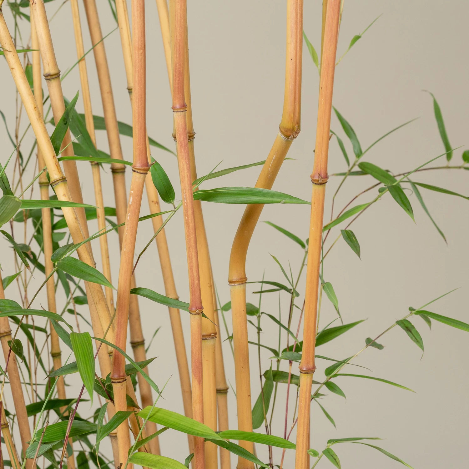 The culms of Phyllostachys aureosucata ‘Aureoculis’ are generally very upright in growth, but the lower growth will sometimes appear with striking, strongly zig-zagged internodes.