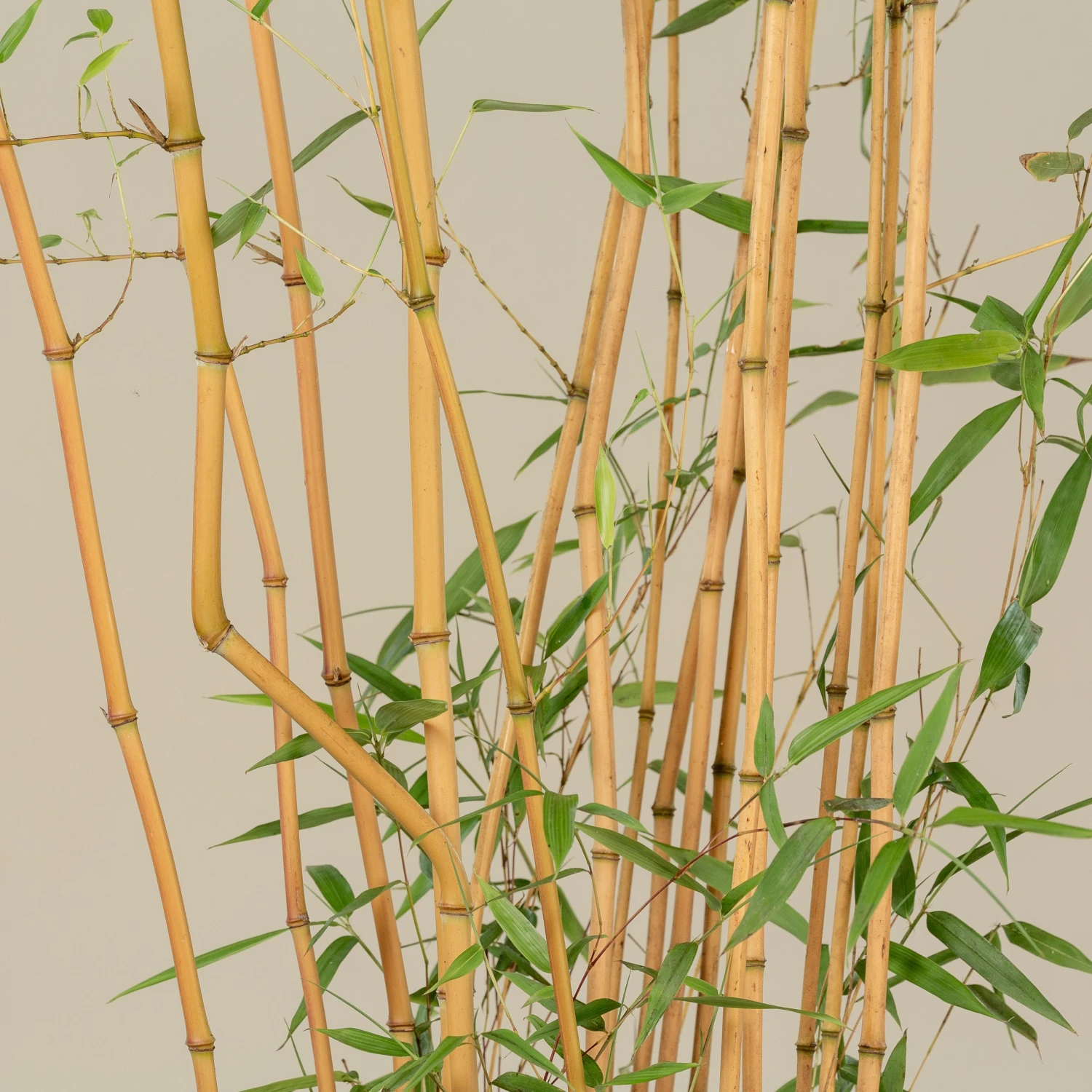 Golden Crookstem Bamboo is often regarded as one of the most adaptable and impressive of all golden-caned bamboos. It features glossy light green leaves, with light green and golden streaked culms which emerge beautifully striped, and develop a magenta tint in the right lighting conditions.