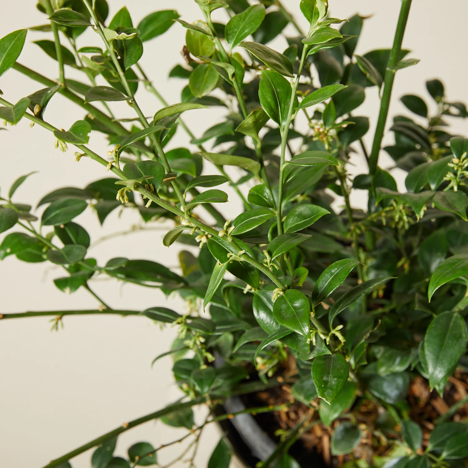 Its inconspicuous flowers emit a sweet scent during late winter, infusing the air with a captivating aroma. Ideal for adding texture and colour to outdoor spaces, Sarcococca ruscifolia embodies enduring charm and versatility.
