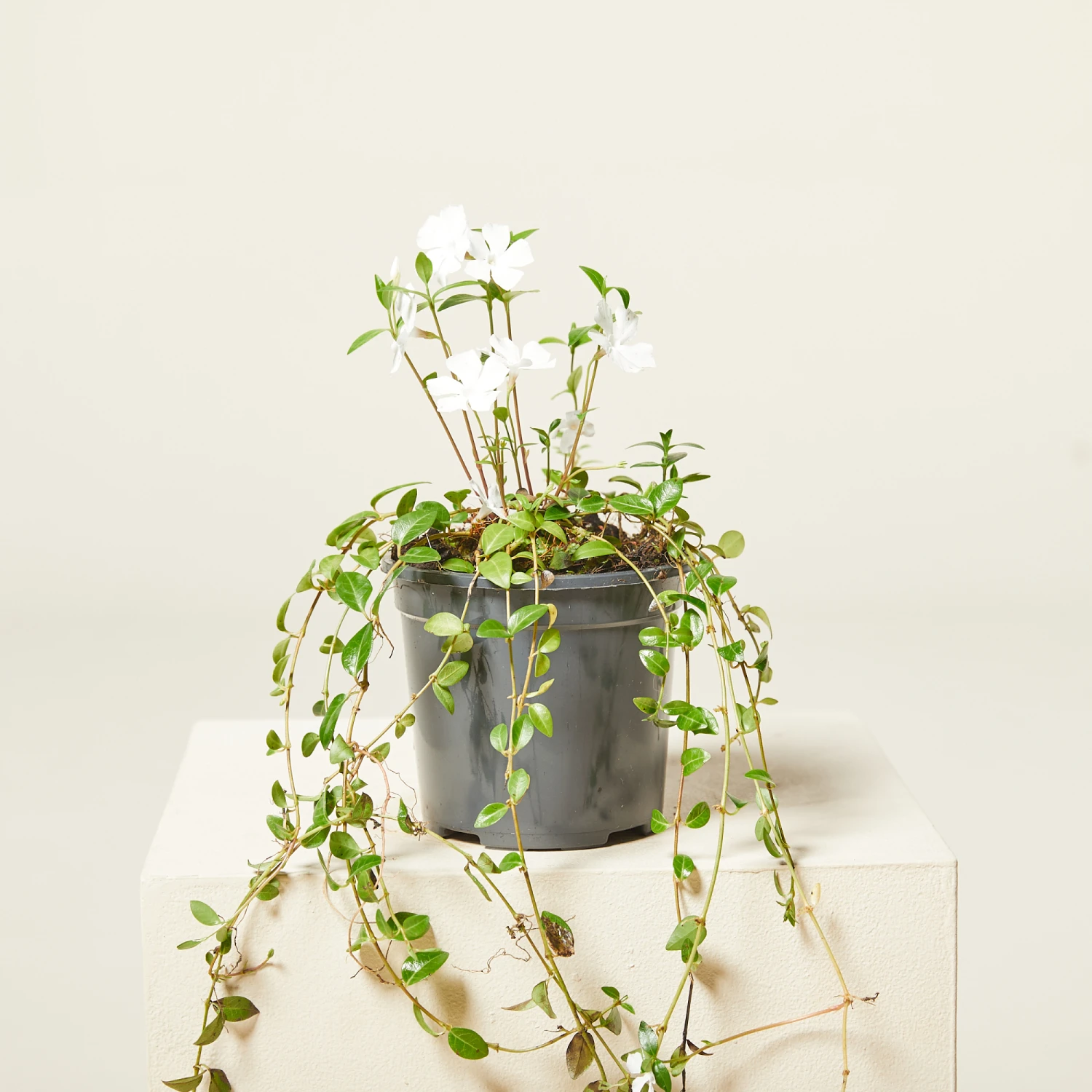 White Periwinkle requires minimal upkeep and spreads quickly, creating a lush, weed-resistant ground cover. Its versatility and aesthetic appeal make it a favoured option for enhancing garden beds, borders, and slopes with vibrant colour and texture.